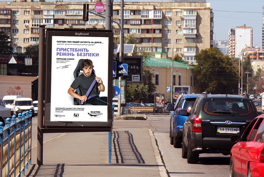 BigMedia (BigBoard Group) стала партнером первой международной социальной кампании  «#3500lives: безопасность на дорогах», которую проводит в 70 странах мира FIA, Международная автомобильная федерация, при поддержке JCDecaux. В августе 2017 года c рекламных щитов в Киеве, Днепре, Львове и Харькове известные в мире люди, звезды спорта и шоу-бизнеса, призывают помнить о правилах безопасности на дорогах. Двукратный чемпион мира Формулы-1 Фернандо Алонсо напоминает: «Пристегните ремень безопасности».  Фарелл Уильямз, певец, автор песен и музыкальный продюсер, призывает: «Не пишите смс за рулем». Мишель ЕО, актриса, продюсер и посол доброй воли программы развития ООН, акцентирует на безопасности детей: «Используйте детское кресло». Теннисист, победитель 15 турниров Большого Шлема, Рафаэль Надаль обращает внимание на техническое состояние автомобиля: «Проверьте шины».