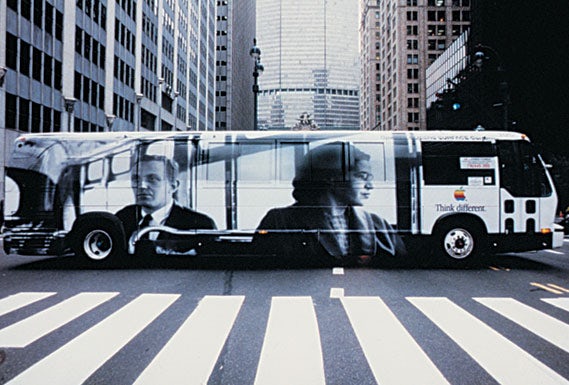 Исследования показывают, что представители поколения Z считают наружную рекламу «успокаивающей», сообщил он, отметив при этом, что Apple еще в 1990-х начала вкладывать значительные средства в этот канал для продвижения компьютеров Mac (кампания Think Different). Например, в 1998 году Apple разместила на фасаде здания в Лос-Анджелесе баннер с изображением Джона Леннона и Йоко Оно.