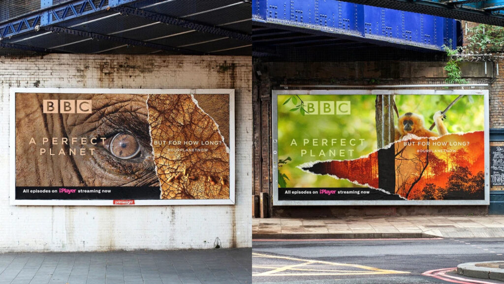 Для просування циклу екологічних програм сера Девіда Аттенборо «Ідеальна планета» BBC Creative задіяв власні білборди, щоб наочно продемонструвати, що саме люди є руйнівною силою на планеті. Шалений успіх кампанії довів, що зовнішня реклама все ще може мати неабиякий вплив. Навіть тоді, коли через пандемію всі сидять по домівках.