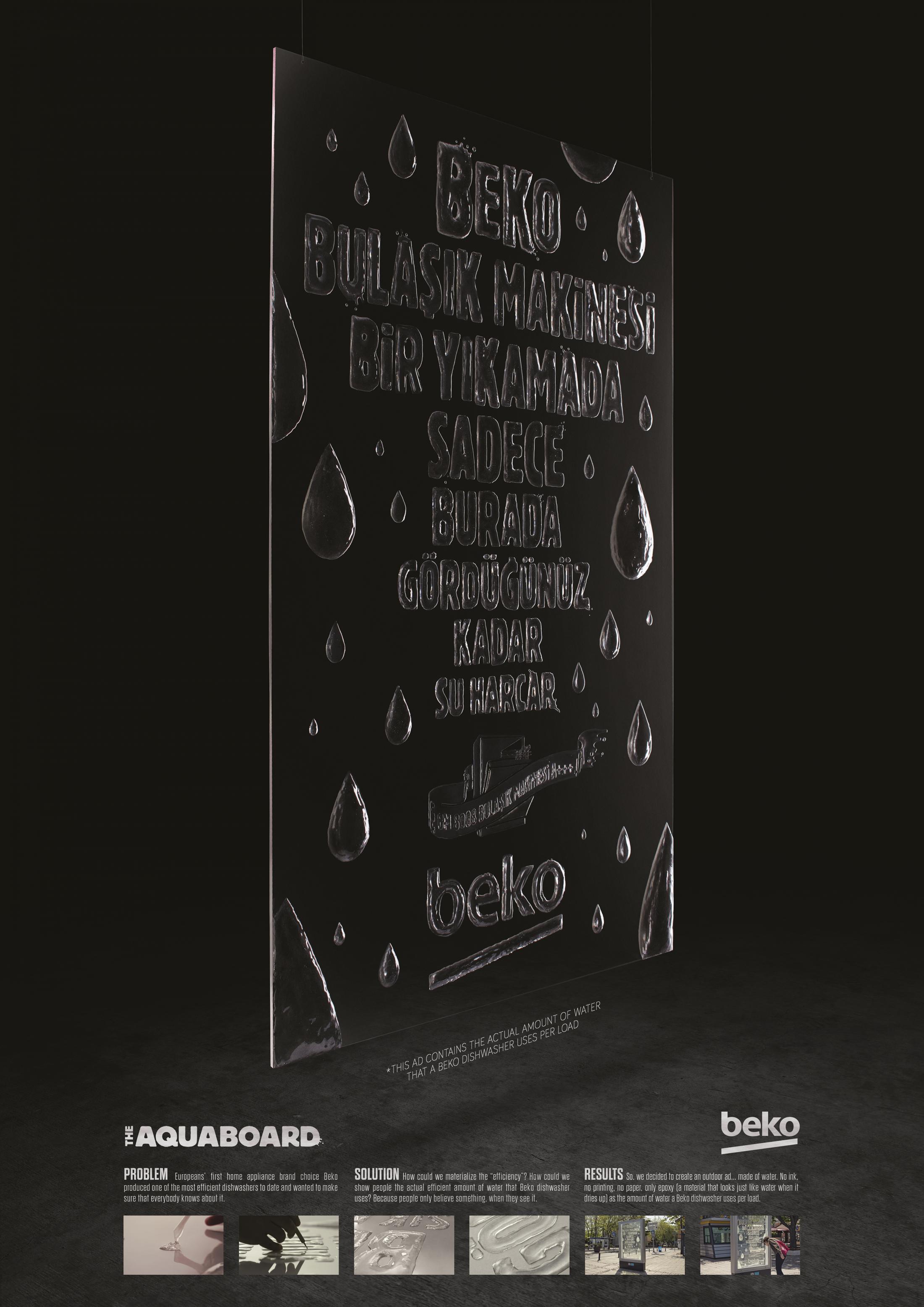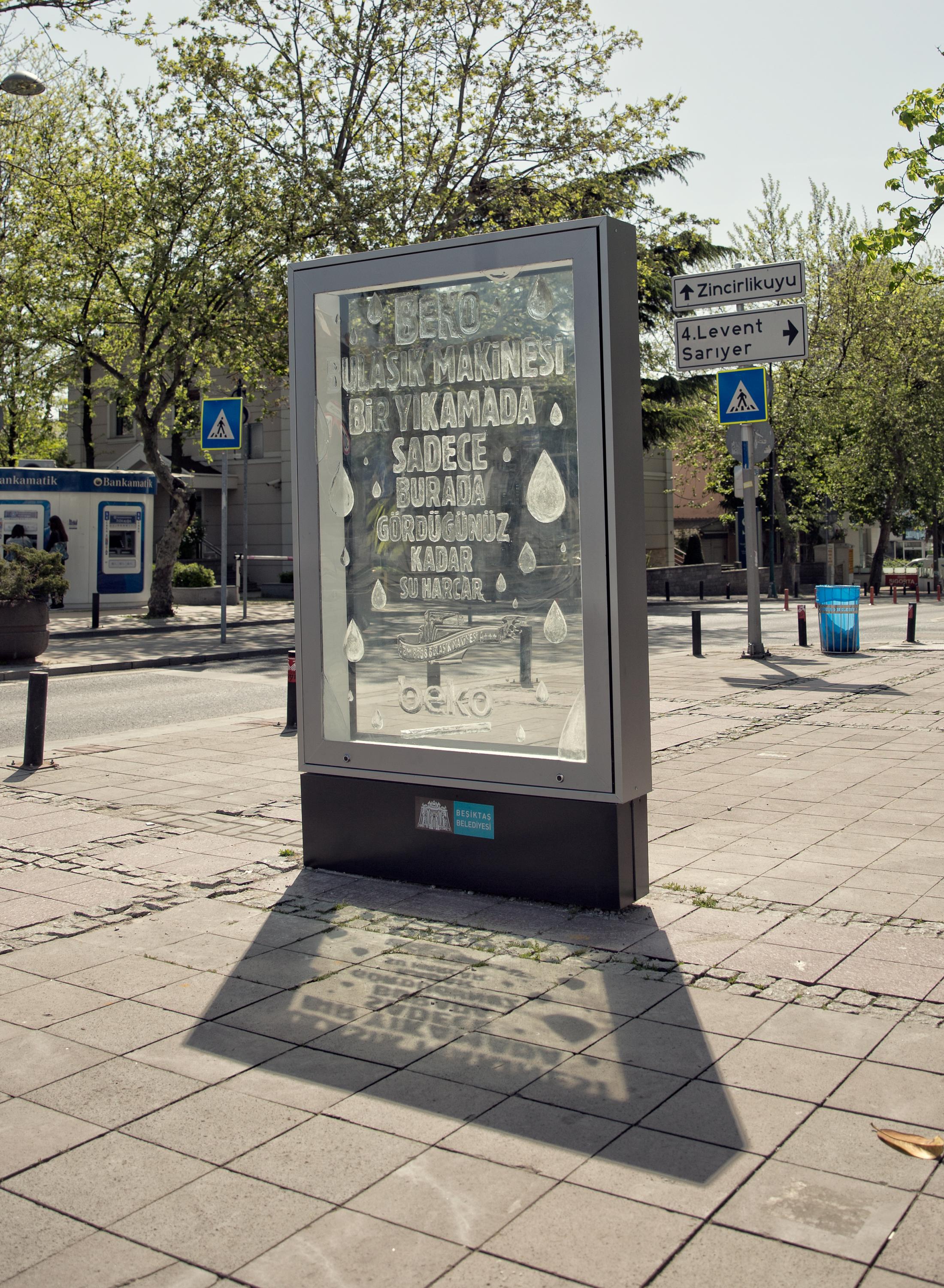 Посыл Beko был воплощен в ситилайте на одной из площадей Стамбула. Постер для него был изготовлен с помощью эпоксидной смолы, вещества, в застывшем состоянии напоминающего воду. При этом количество смолы в креативе соответствовало объему воды, потребляемой посудомоечной машиной.