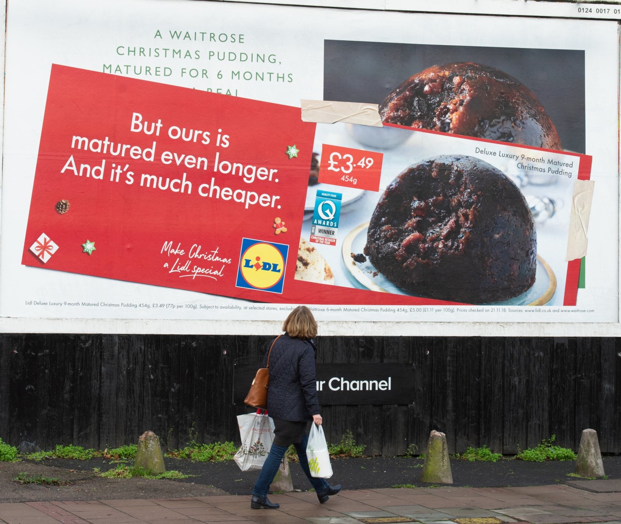 А расположили такую наружную рекламу рядом с магазинами Waitrose и Marks & Spencer — чтобы переманить их покупателей, показав разницу в цене.