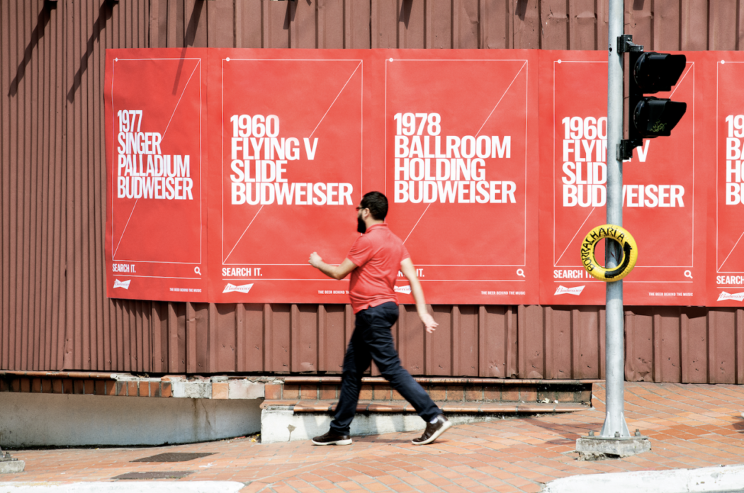 ООН-кампания Budweiser — своего рода квест. Вам нужно найти на постерах ключевые слова, которые в результате напрямую приведут к фотографиям банок Budweiser в руках некоторых самых знаменитых музыкантов.