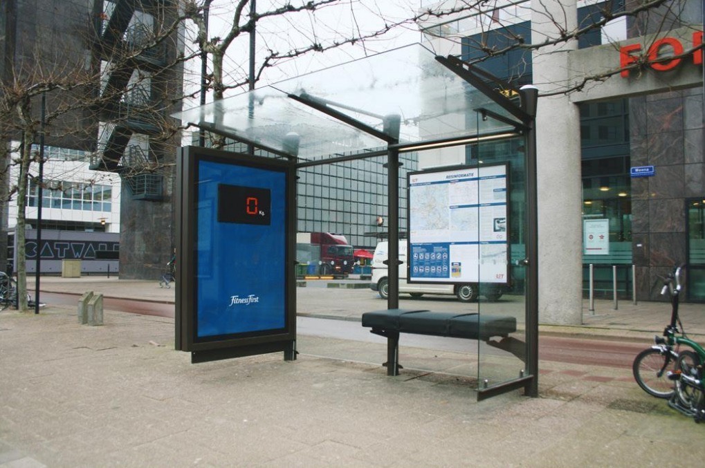 В Амстердаме сеть фитнес-клубов Fitness First превратила скамейку на автобусной остановке в весы. Каждый, кто садился на сидение, видел свой вес на дисплее, встроенном в рекламную плоскость.
