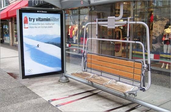 В рамках празднования Зимних Олимпийских игр 2010 года в Ванкувере компания Vitamin Water превратила скамейку на автобусной остановке в сидение горнолыжного подъемника. Текст на рекламной плоскости гласил: «Попробуй Vitamin Water. С ней повседневные дела ощущаются, как олимпийские свершения».