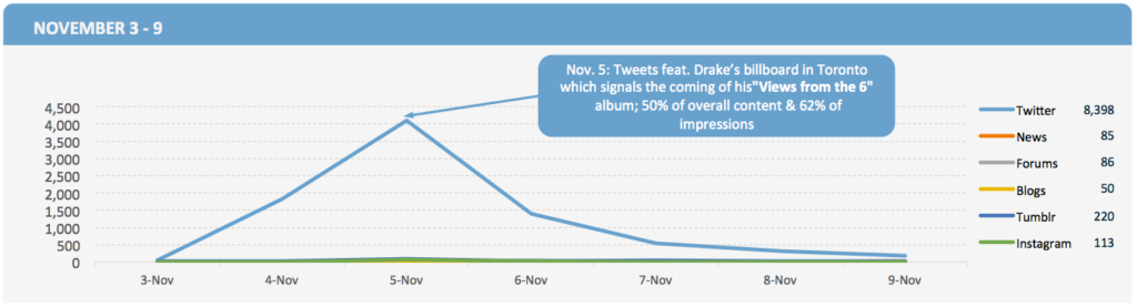 На этом билборде практически ничего и не было (хотя многие жители Торонто догадались, что он имеет отношение к реперу Дрейку), но информация о нем распространилась вирально. Пользователи из Торонто в удивлении начали выкладывать фотографии билборда в Твиттер, Инстаграм и другие сервисы. По мере роста количества упоминаний о билборде в социальных каналах тему подхватили и популярные СМИ вроде Time и Spin.