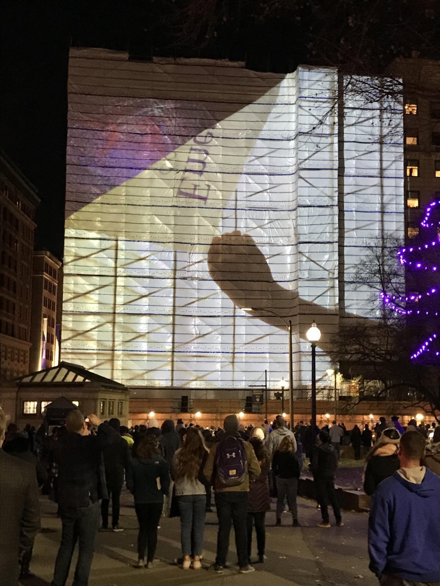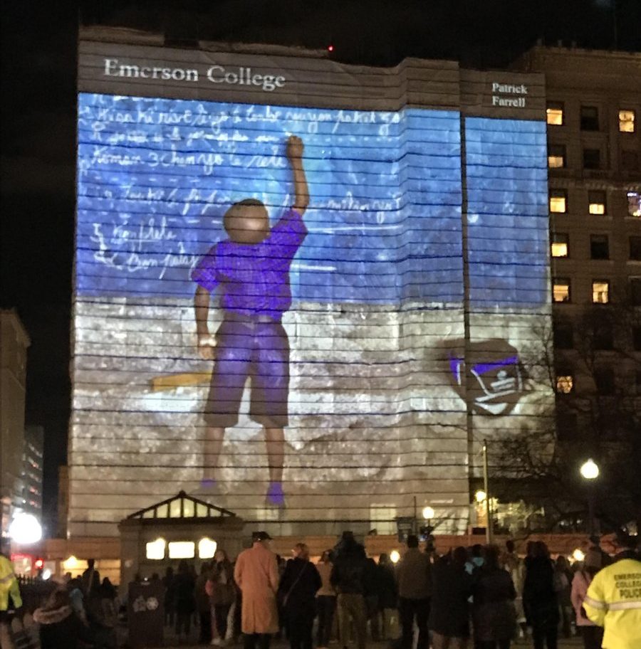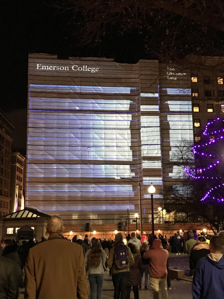 Кусочек улицы рядом с парком Бостон-Коммон, где расположен Колледж Эмерсон, на полтора года стал гораздо ярче. В конце ноября вуз превратил защитную сетку на строительных лесах в экран для художественного проекта. На время ремонта фасад здания скрывается под белым полотном. Но теперь это не просто атрибут реновации, а настоящий видеоноситель.