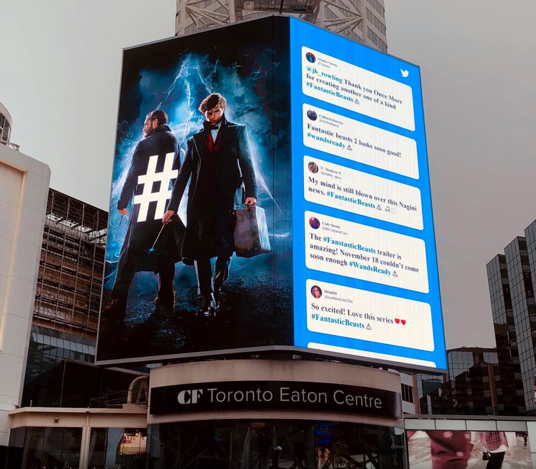 The #FantasticBeasts: The Crimes of Grindelwald final trailer celebration continues with an amazing takeover in Yonge-Dundas Square with @Twitter! pic.twitter.com/LCZLVowc5a