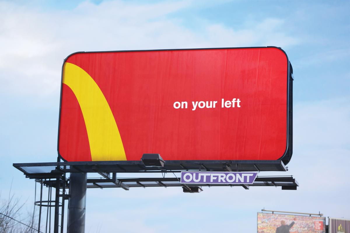 Рекламная коммуникация «Следуй за арками» (Follow the Arches) состоит из плакатов, которые направляют жителей в рестораны McDonald’s. На красных постерах изображены лишь части логотипа. За счет простоты и узнаваемости реклама понятна в любой точке мира на любом языке.