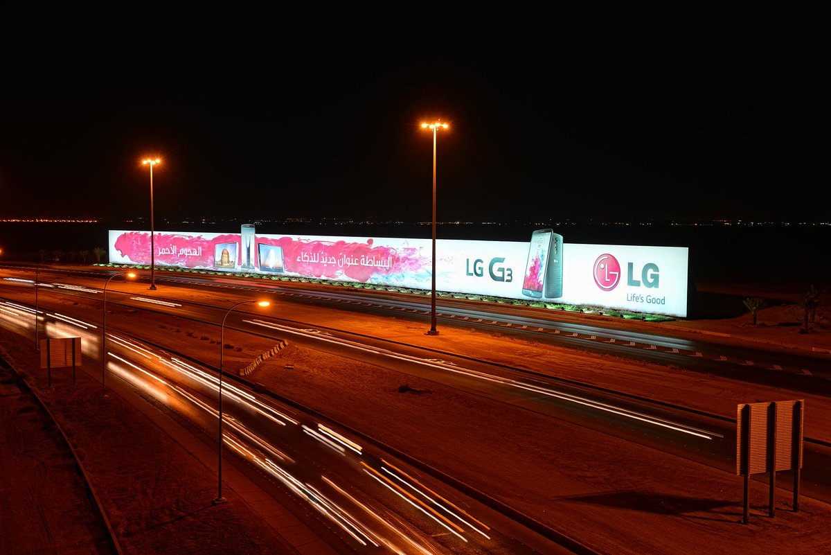 Площадь полотна составила примерно два футбольных поля. Конструкцию высотой 12 метров и длиной 240 метров установили неподалеку от международного аэропорта Эр-Рияда. Благодаря удачному расположению, рекламу ежегодно видят около 20 млн человек, пользующихся услугами аэропорта. Экономический эффект компания LG оценила в $25 млн.