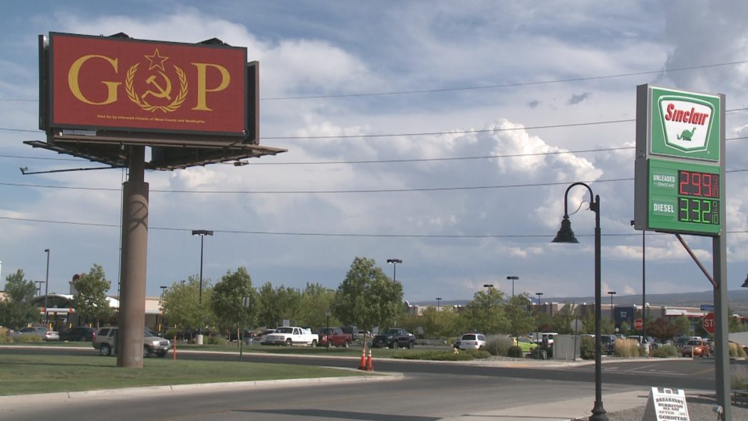 В Гранд-Джанкшене (Колорадо) появился билборд, на котором аббревиатура GOP (Grand Old Party — так называют республиканцев) напоминает советскую символику. Она размещена на красном фоне с буквой O в виде серпа и молота.