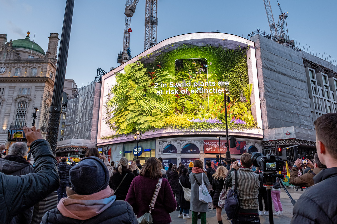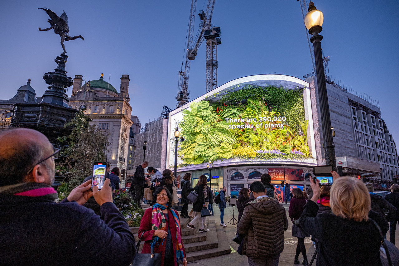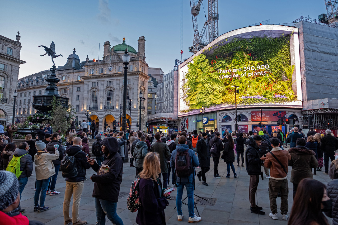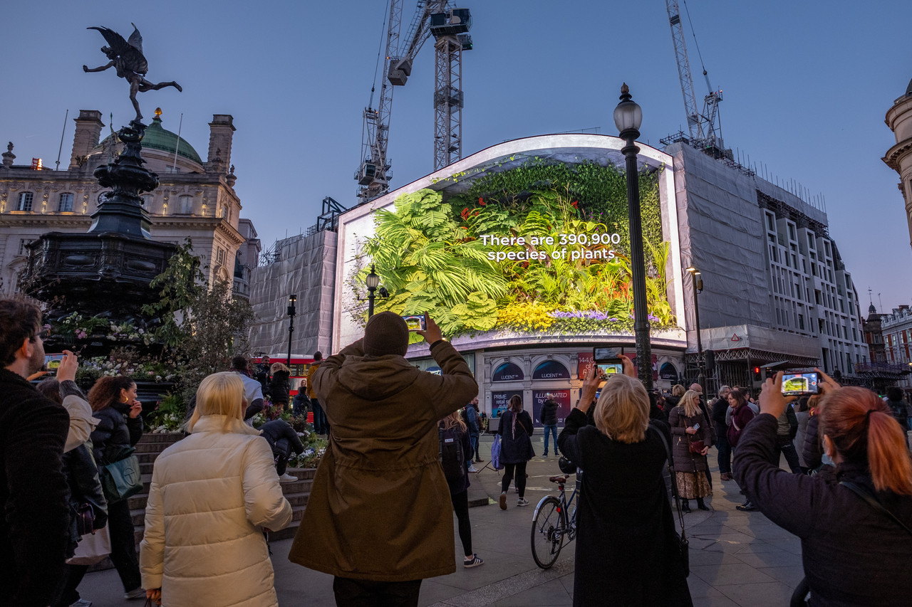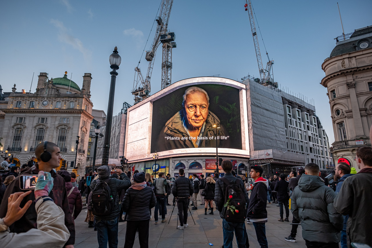 Сэр Дэвид Аттенборо, британский телеведущий и натуралист, один из пионеров документальных фильмов о природе, представил общественности новый проект о растительном мире. Работа презентована в самом центре Лондона — на рекламоносителе «Огни Пикадилли». OOH-кампания направлена на продвижение интерактивной выставки The Green Planet AR Experience, проходящий по соседству с «Огнями Пикадилли» — в соседнем здании на Риджент-стрит.