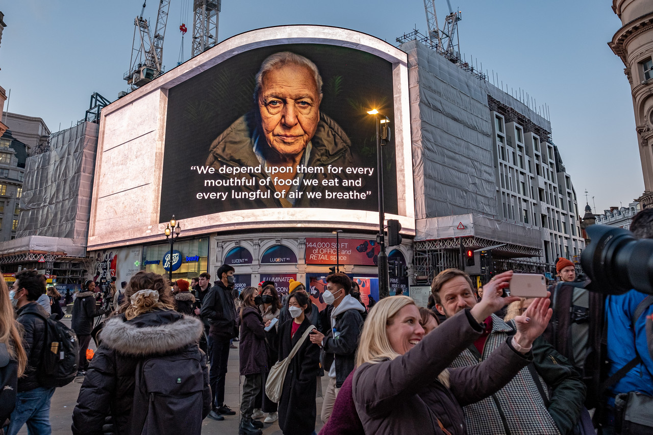 AR-проект документалиста Дэвида Аттенборо анонсирован трехмерной рекламой на «Огнях Пикадилли»