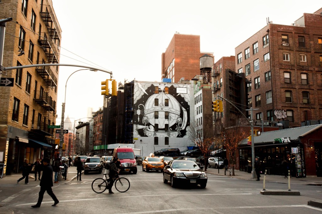 Рисунок для мурала «Отшельница» был выполнен вручную в течение шести дней и пробудет на всеобщем обозрении до конца марта. Изображенная на стене девушка глядит в трубу телескопа, словно хочет детально рассмотреть новые коллекции американских дизайнеров. Имя художника, чья работа будет нанесена сверху, пока держат в тайне.