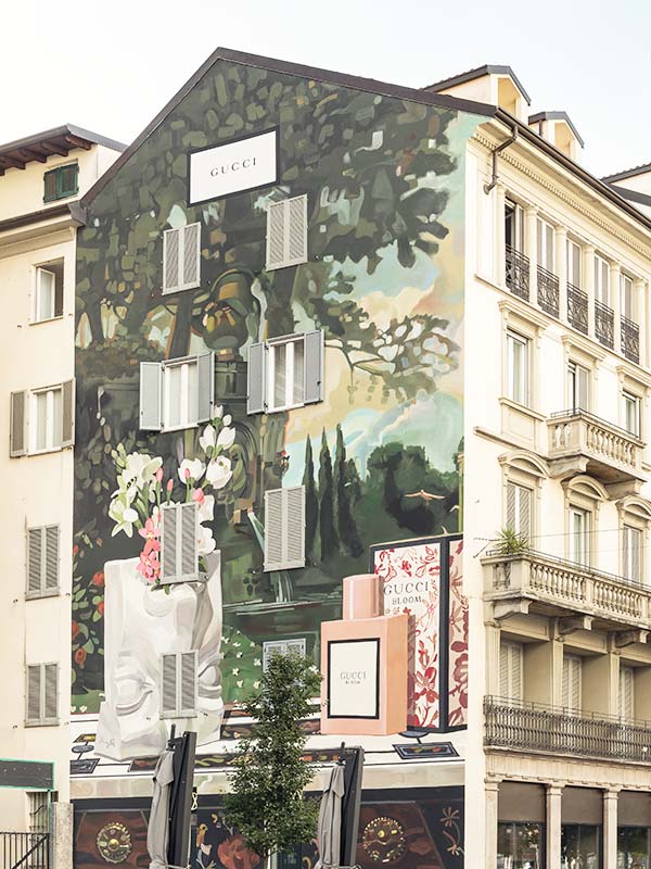 В рамках продвижения нового аромата Gucci Bloom фэшн-гигант реализовал одновременно в Нью-Йорке и Милане необычный арт-проект. В его рамках известный испанский художник-иллюстратор Игнаси Монреаль создал две уникальные инсталляции. Одна из них (760 кв. м) размещена в нью-йоркском Сохо, вторая (176 кв. м) — на улице Ларго-ла Фоппа в итальянской столице моды.