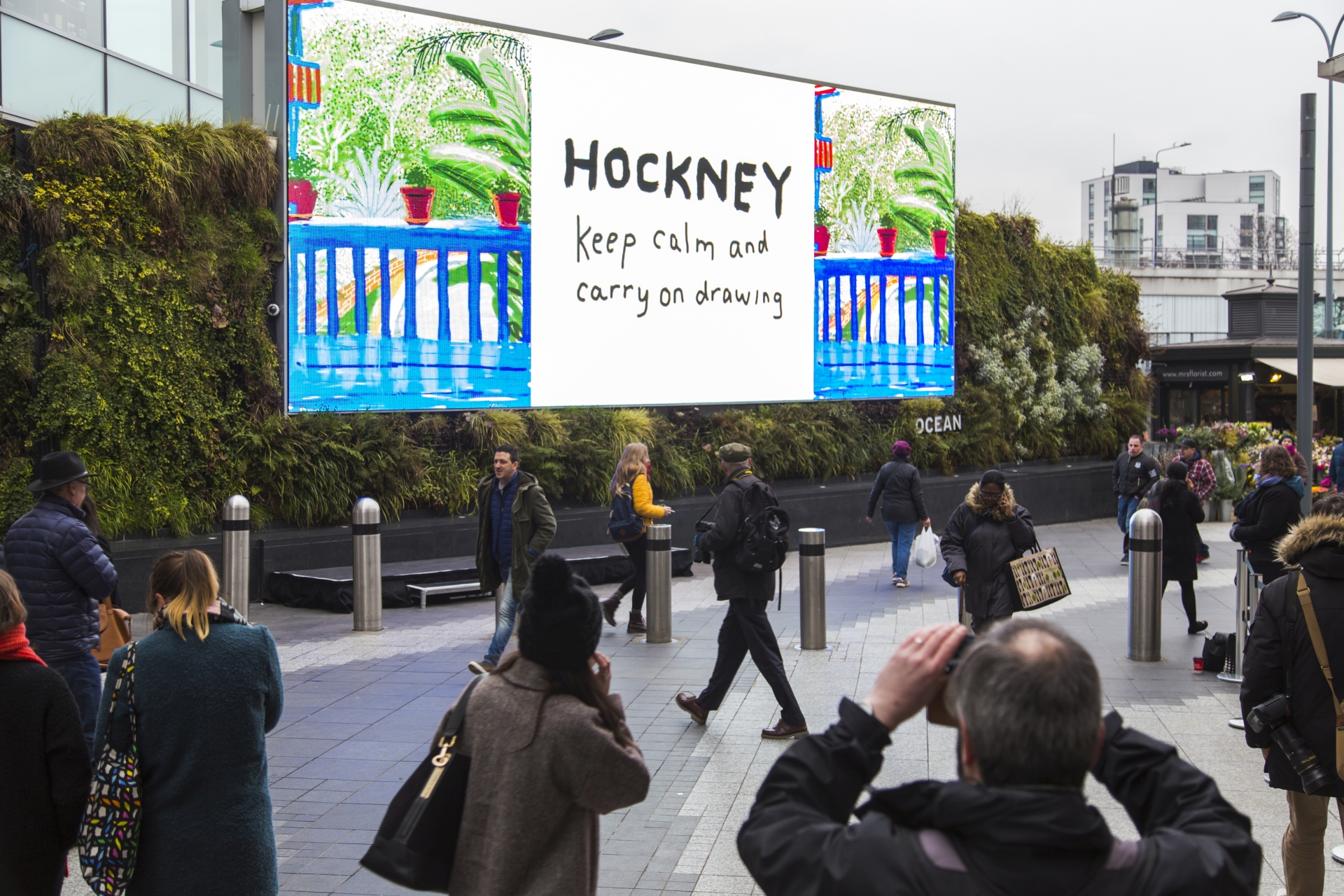 Галерея Тейт анонсировала выставку картин Дэвида Хокни с помощью цифровой наружной рекламы. Ее организовали агентство Posterscope и OOH оператор Ocean Outdoor.