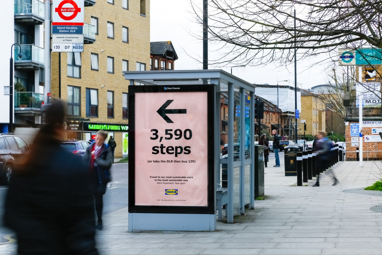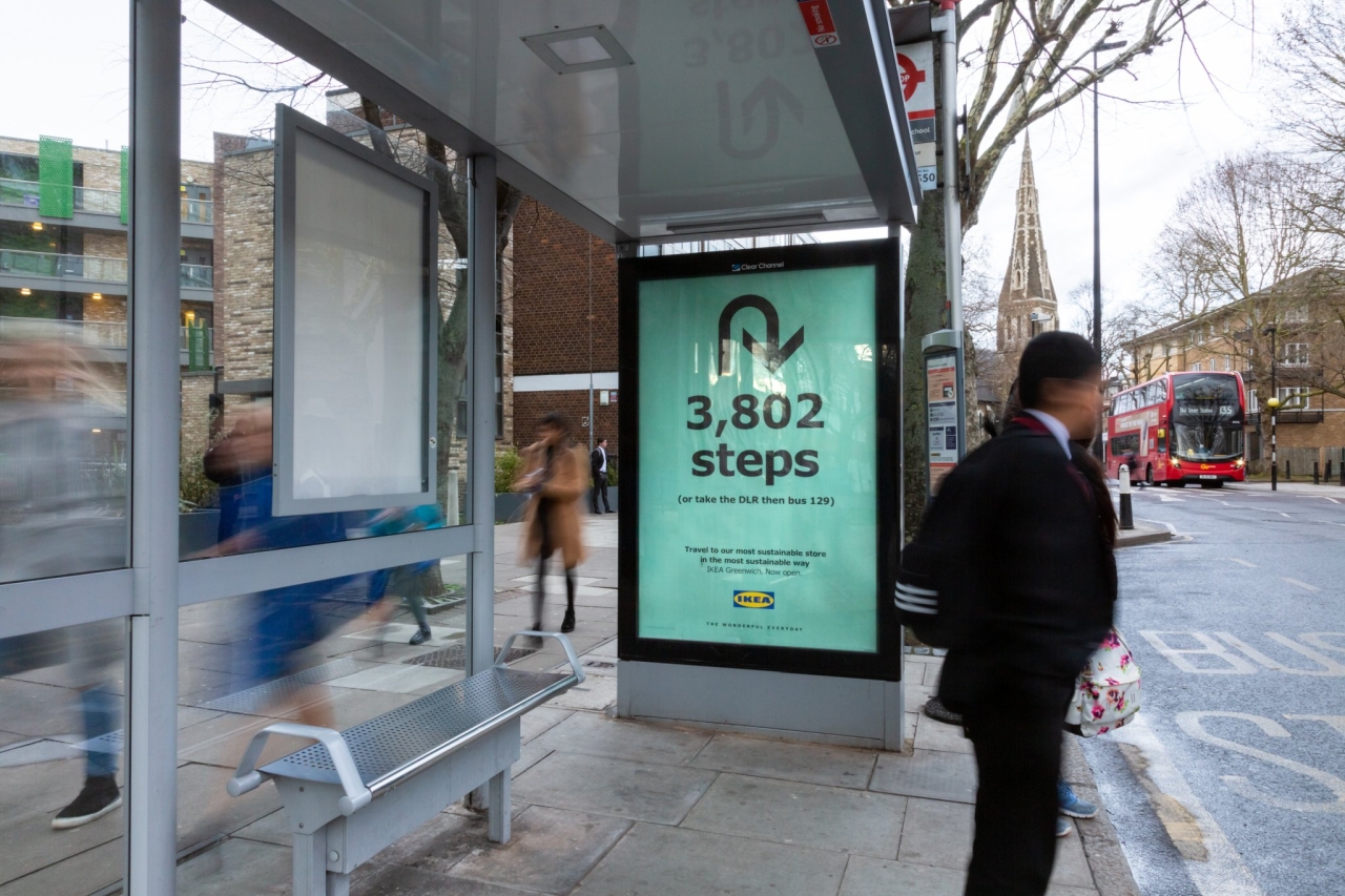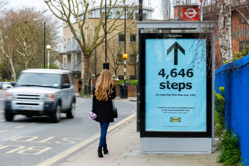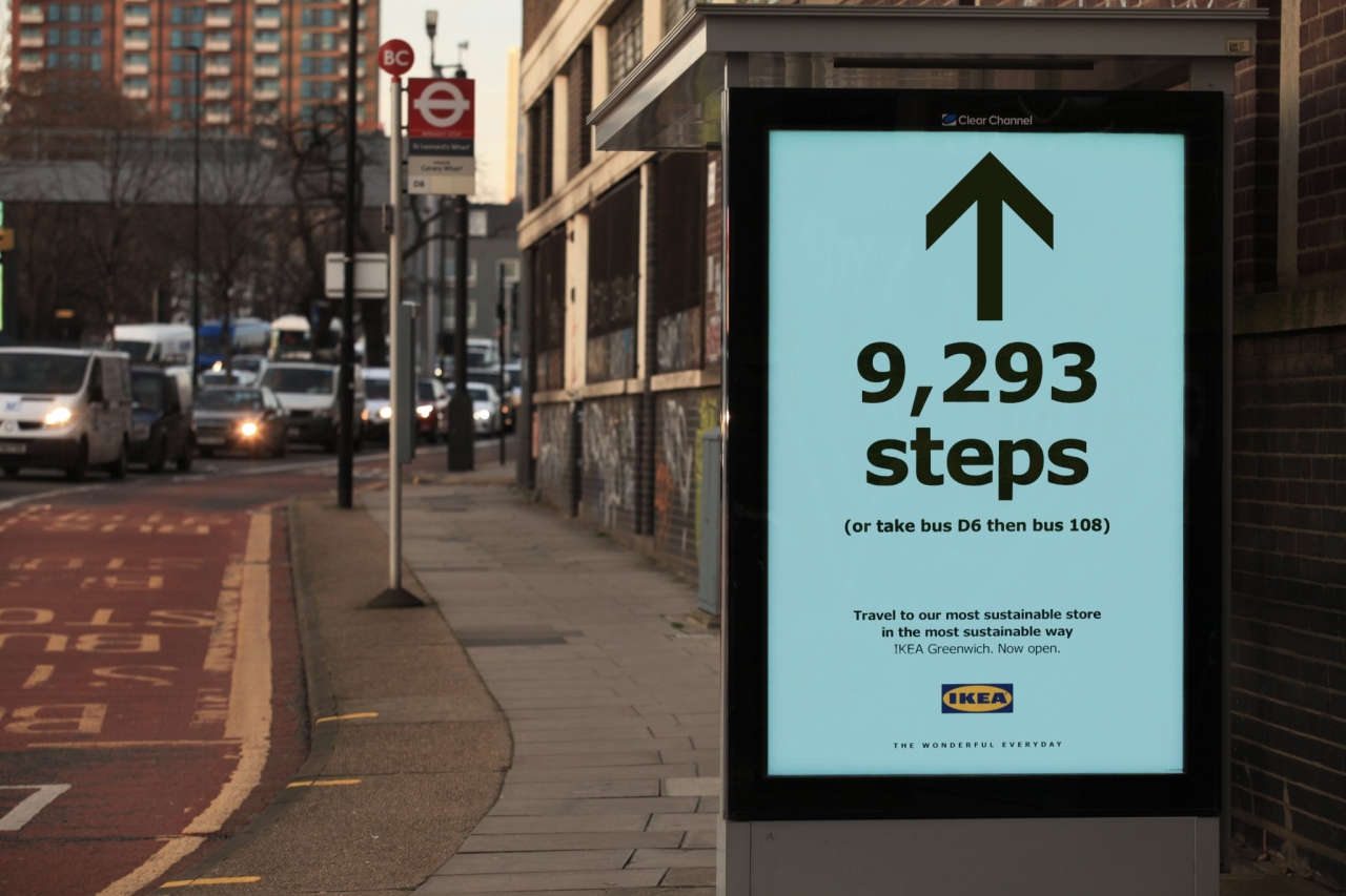 Кампания создана с учетом этих особенностей. Наружная реклама появилась в разных уголках Лондона. Каждый носитель содержит уникальное сообщение — количество шагов от этого места до IKEA Greenwich (или маршрут на общественном транспорте). Так компания планирует не только привлечь внимание покупателей к магазину, но и поспособствовать тому, чтобы они добирались туда пешком, а не на автомобиле. Что снизит количество вредных выбросов в атмосферу.