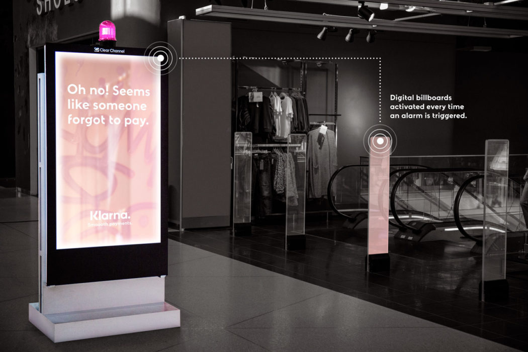 Чтобы рассказать покупателям, что платить легче с этим приложением, агентство подсоединило цифровые рекламоносители к системе сигнализации в стокгольмских магазинах. Когда покупатели пытались покинуть магазин с вещами, за которые не заплатили, они получали уведомления о забытом платеже. Громкие напоминания с помощью сирен, конфетти и аудио-сообщений сразу же привлекали внимание целевой аудитории.