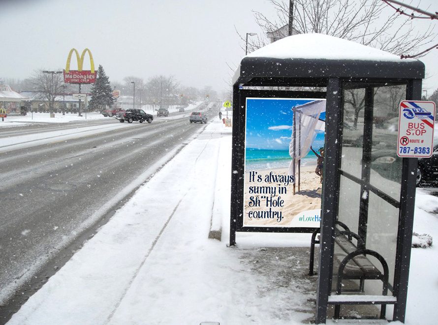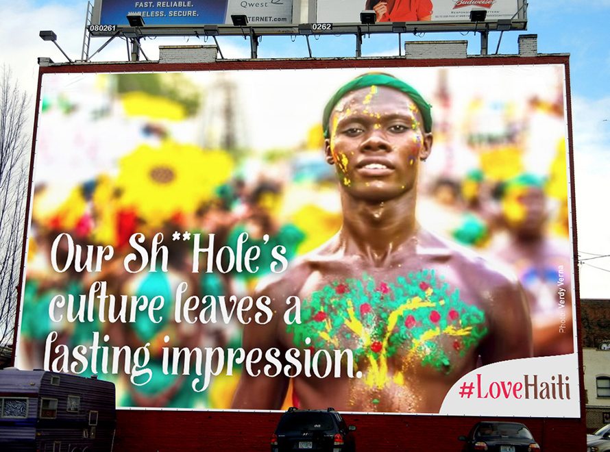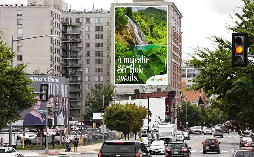 Фабьен Додар, креативный директор агентства Parkour Studio, расположенного в Гаити, решил использовать слова Трампа в пользу родной страны. Он разработал серию принтов, которые могут стать не только хорошим ответом обидчику, но и отличной рекламой Гаити. Для размещения наружной рекламы Додар выбрал столицу США — Вашингтон, а сбор средств на размещение принтов в городе ведется с помощью фандрайзинга. Цель — собрать 40 тыс. долларов. Меньше, чем за неделю, креатор из Гаити собрал около 5 тыс.