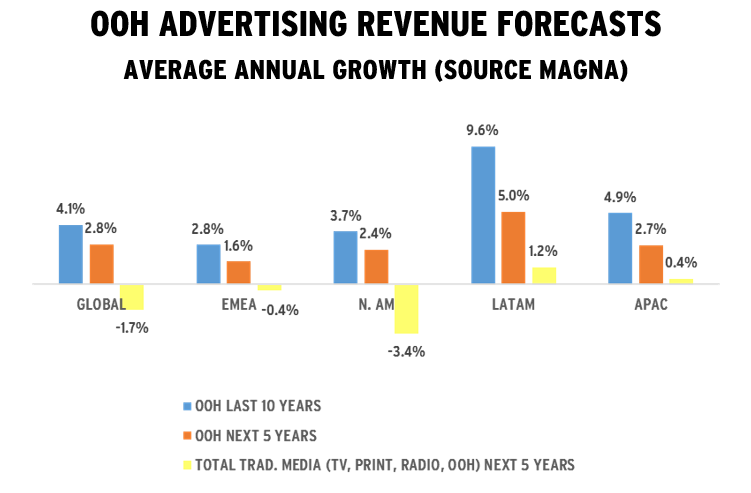 В то время как традиционные медиа изо всех сил пытаются дотянуться до потребителей, out of home реклама использует технологии эпохи диджитала для создания новых подходов, сохранения актуальности и привлечения новых рекламодателей. В результате OOH — единственное устойчиво растущее традиционное медиа последних десяти лет.