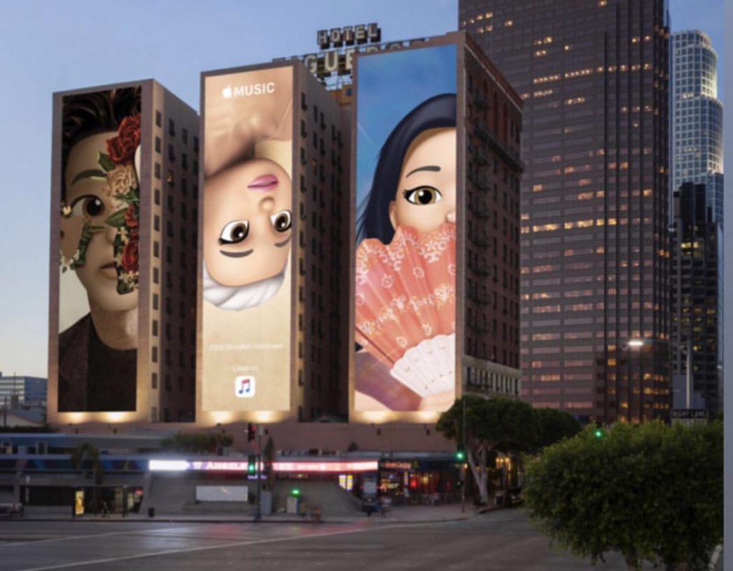В преддверии очередной «Грэмми», музыкальной премии Американской академии звукозаписи, компания Apple разместила в Лос-Анджелесе наружную рекламу, изображающую номинантов в виде мемоджи. Сюжеты напоминают, что номинированные на премию альбомы можно слушать в Apple Music.