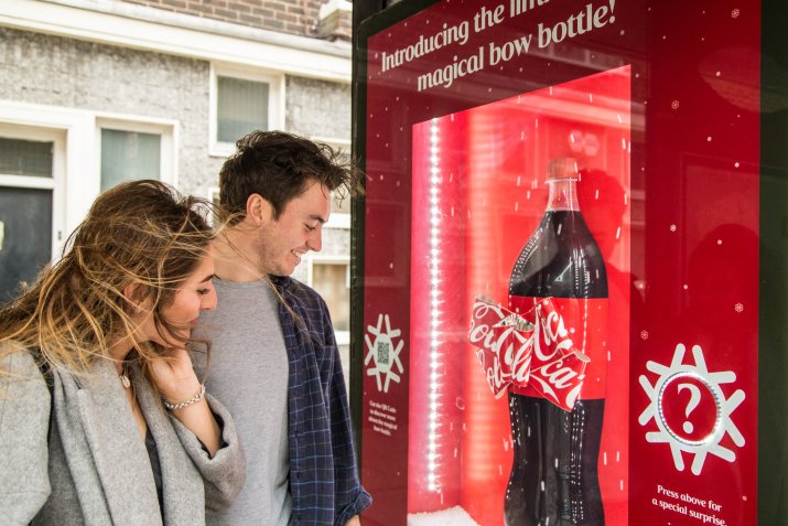 Coca-Cola, король рождественского маркетинга, одновременно задействовал несколько рычагов: ограниченное предложение праздничной упаковки напитка и QR-код, направляющий на тематический микросайт.