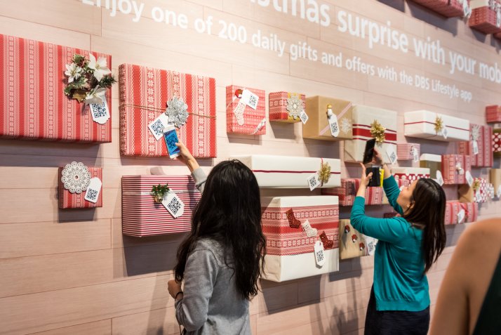 Китайский банк DBS отнесся к рождественским праздникам как возможности укрепить отношения с клиентами и наростить базу пользователей фирменного приложения. QR-коды на рекламной инсталляции в одном из торговых центров Сингапура ссылались на специальные предложения расположенных рядом магазинов.
