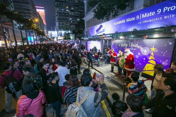 Huawei представил смартфон Mate 9 перед праздниками. В рекламной кампании использовались брендированные автобусные остановки с таймером обратного отсчета до Нового года. Кульминацией кампании стала костюмированная промо-акция в новогоднюю ночь.