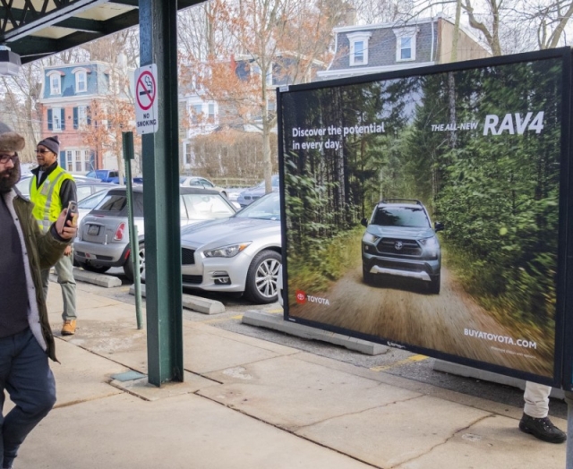 Поскольку автосалоны готовятся к весеннему сезону продаж, у них есть возможность с помощью наружной рекламы воздействовать на потенциальных покупателей еще до того, как те переступят порог дилерского центра. По данным исследования Google и Kantar TNS, 90% потребителей перед покупкой автомобиля ищут информацию о нем онлайн. Out of home реклама стимулирует онлайн-активность в четыре раза эффективнее других офлайн-медиа, поэтому она — очевидный выбор для решения автодилерами своих коммуникационных задач. Для вывода на рынок обновленной Toyota RAV4 дилер Tri-State провел в Филадельфии кроссканальную кампанию. В ней одновременно использовалось несколько OOH-форматов: от рекламы на бортах автобусов до носителей на железнодорожных платформах.
