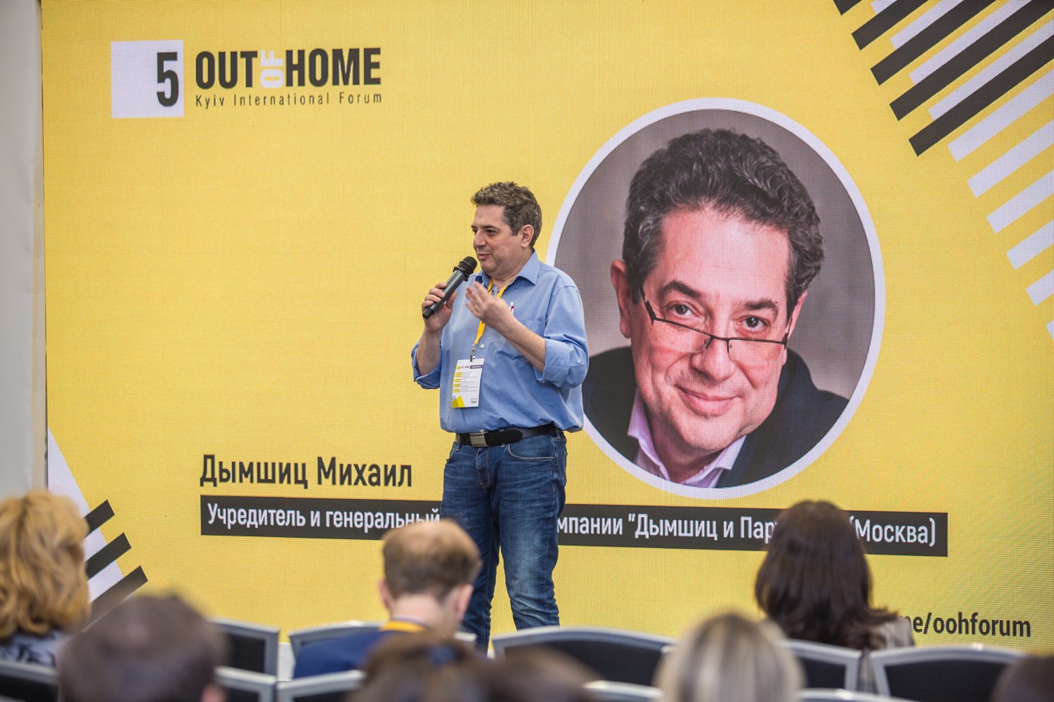 Следующий спикер — хедлайнер форума, учредитель и генеральный директор компании «Дымшиц и Партнеры» поведал секреты визуального восприятия наружной рекламы зрителем, а также объяснил, почему «наружка» работает вместе с другими сферами продвижения бренда или товара.