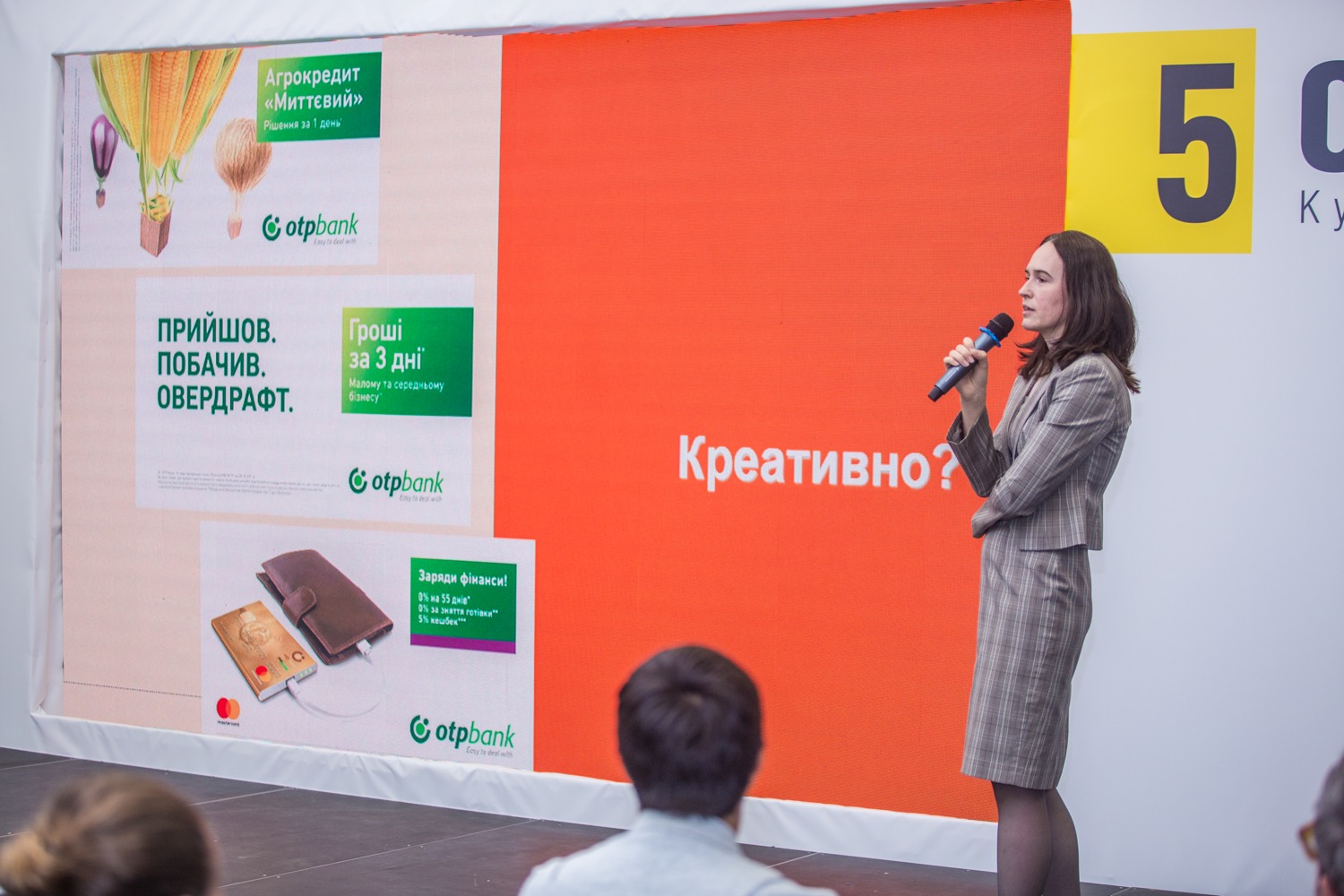 Завершила первый блок начальник отдела маркетинга OTP Bank Наталия Сличук, которая, на примере кейсов OTP Bank и других финансовых учреждений вывела идеальный шаблон наружной рекламы, которая работает на узнаваемость компании или ее продуктов.