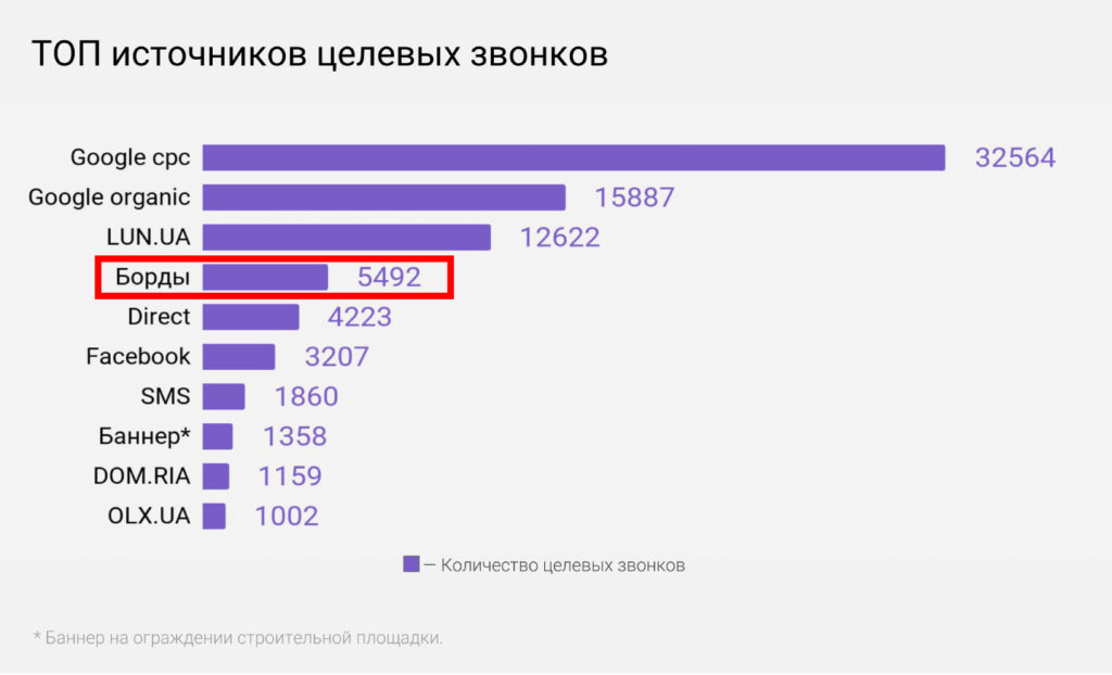 Зачастую рекламодателям сложно оценить эффективность каждого канала в медиамиксе, в частности, определить кого из звонивших в отдел продаж застройщика «привела» наружная реклама. Сервис аналитики звонков Ringostat изучил 212 тыс. звонков в коммерческие отделы девелоперов и выявил, что наружная реклама — самый эффективный офлайн-канал для привлечения потенциальных клиентов. Рекламные сюжеты о недвижимости стимулировали к звонкам 5,5 тыс. человек, превысив показатели Direct, Facebook, SMS и даже баннеров на ограждении строительных площадок.
