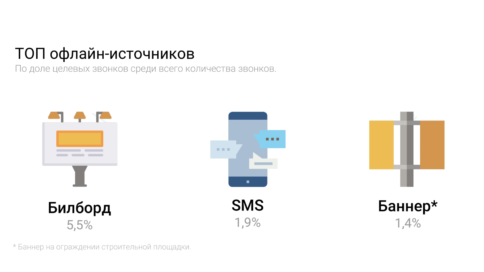 Наружная реклама заняла первое место среди офлайн-каналов, которые подтолкнули потенциального клиента позвонить застройщику. Ее доля составила 5,5%.