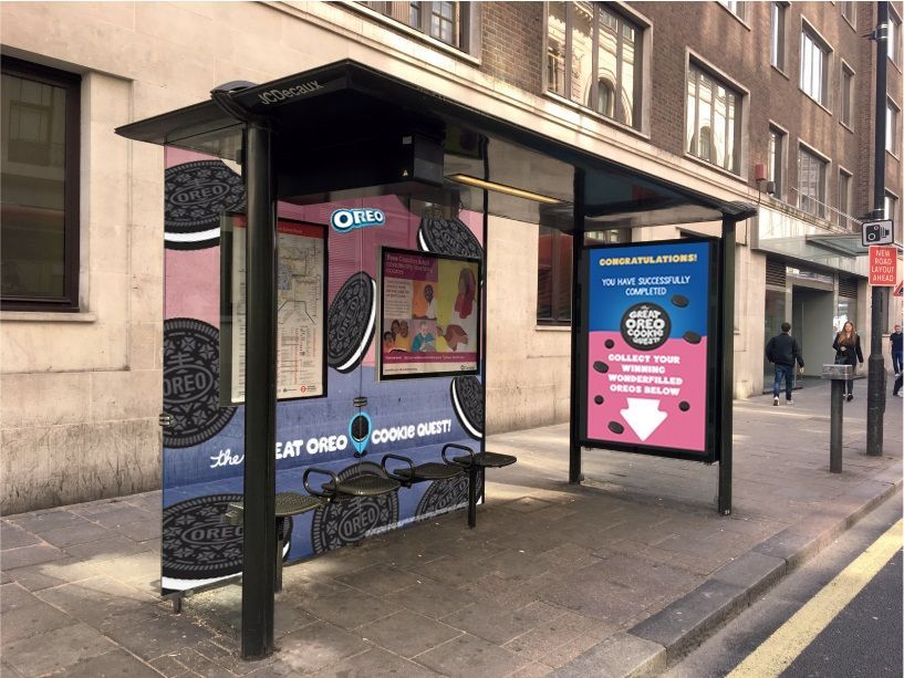 Центральным элементом кампании выступает автобусная остановка на оживленной Нью-Оксфорд-стрит — брендированный павильон с интерактивным ситилайтом. Рекламоноситель предлагает прохожим испытать удачу — отыскать в ходе квеста спрятанное печенье и выиграть упаковку Oreo, которую тут же выдаст встроенный в ситилайт диспенсер. Для участия в квесте нужно установить на смартфон акционное приложение и найти виртуальные Oreo поблизости.