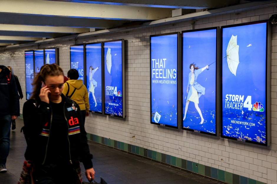 Самые большие экраны, 65 или 55 дюймов, будут находиться над землей над входами в метро. Срюбас прокомментировал, что эти ультра-яркие, погодоустойчивые экраны являются самыми дорогими из всей линейки цифрового инвентаря.