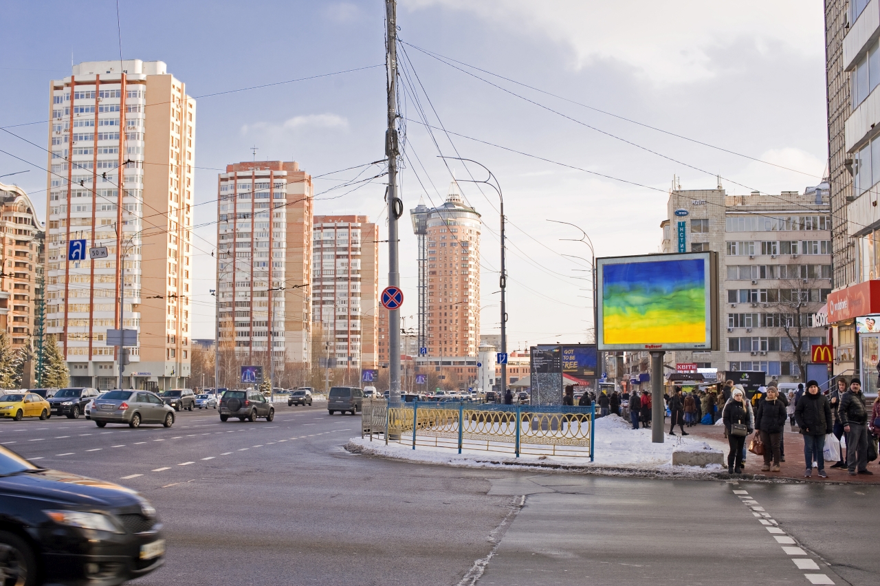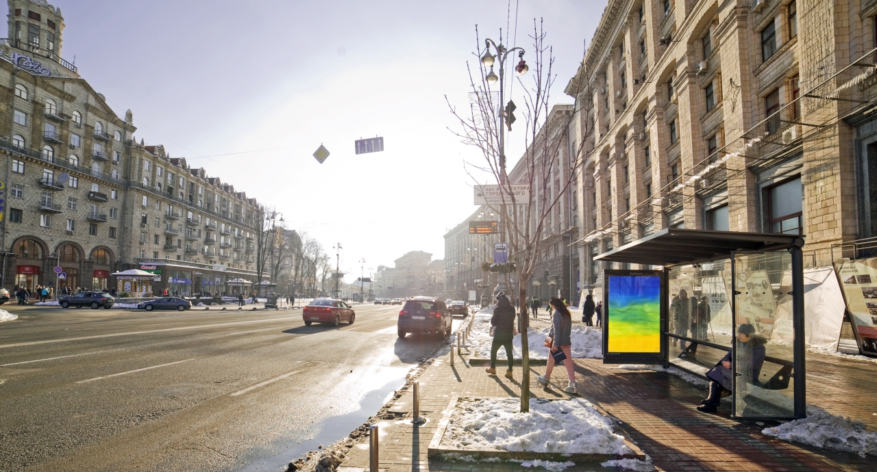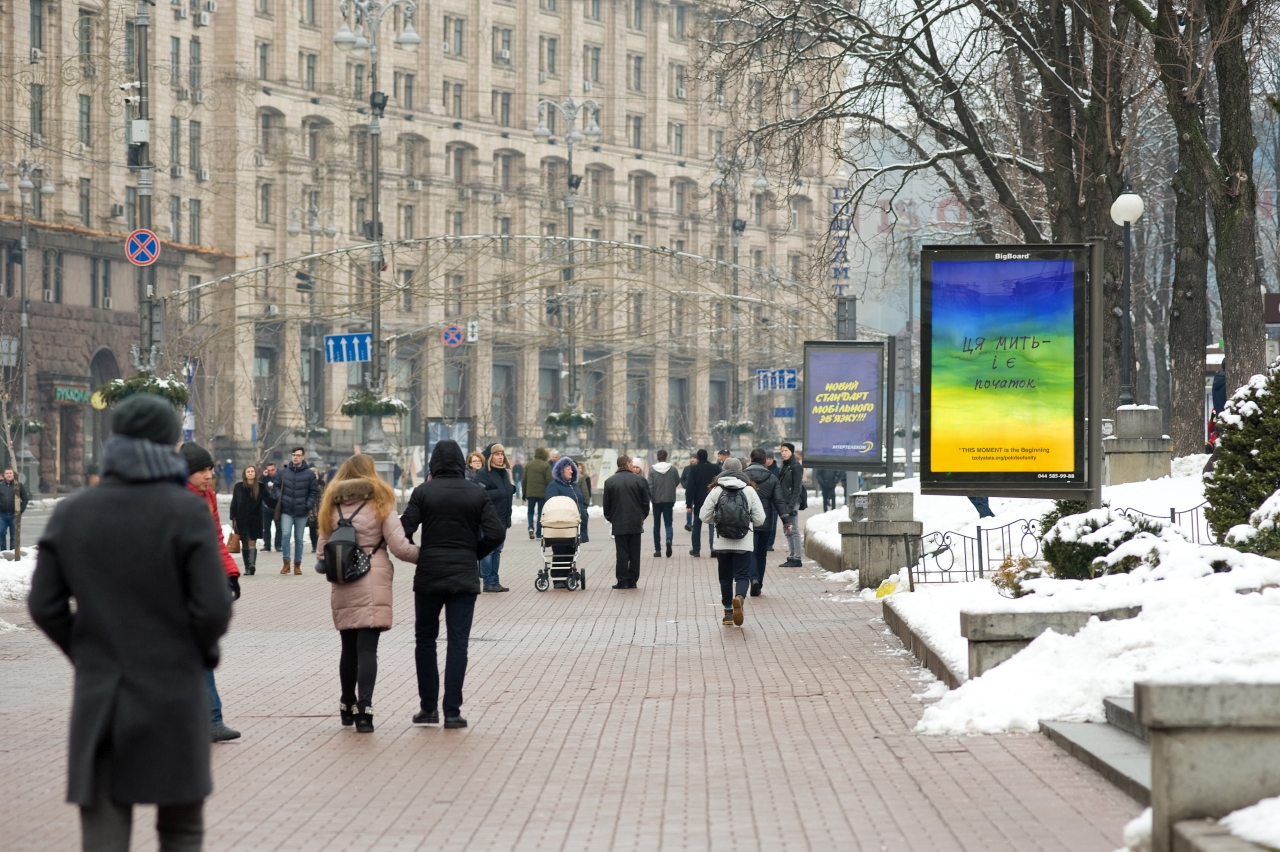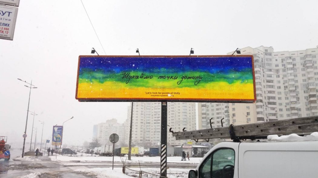 З 5 січня 2018 року «Точки дотику» прикрасили 50 білбордів у Києві. На акварельних малюнках данських художниць синя й жовта фарба змішуються, створюючи смугу яскравого зеленого кольору, що символізує надію.