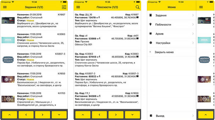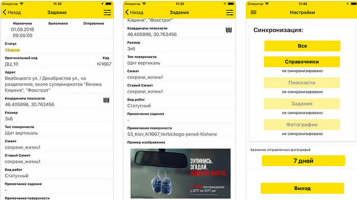 В приложении отображаются результаты размещения сюжета и состояние рекламной плоскости в любом населенном пункте Украины. Сервис связан с информационной системой оператора: поступающие данные интегрируется автоматически.