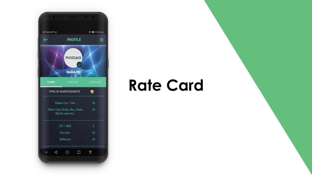 Малазийский оператор рекламы на частных автомобилях Rodeo выпустил мобильное приложение RodeoGO, которое позволяет пользователям заработать на взаимодействии с бренд-коммуникацией. В качестве оплаты за распространение рекламного контента в соцсетях пользователи получают деньги или купоны.