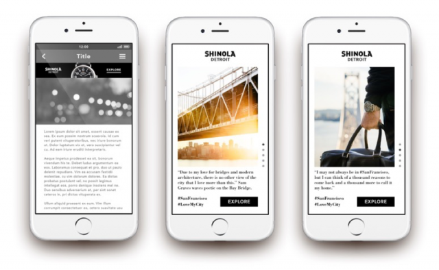 Содержание отдельных сообщений основывалось на том, где оно показывалось, и интерактивных витринах для представления товаров Shinola. В сюжетах использовались узнаваемые объекты и местные достопримечательности, например, мост «Золотые Ворота» в Сан-Франциско. По словам Фермон, это сыграло ключевую роль в оптимизации представления бренда аудитории.