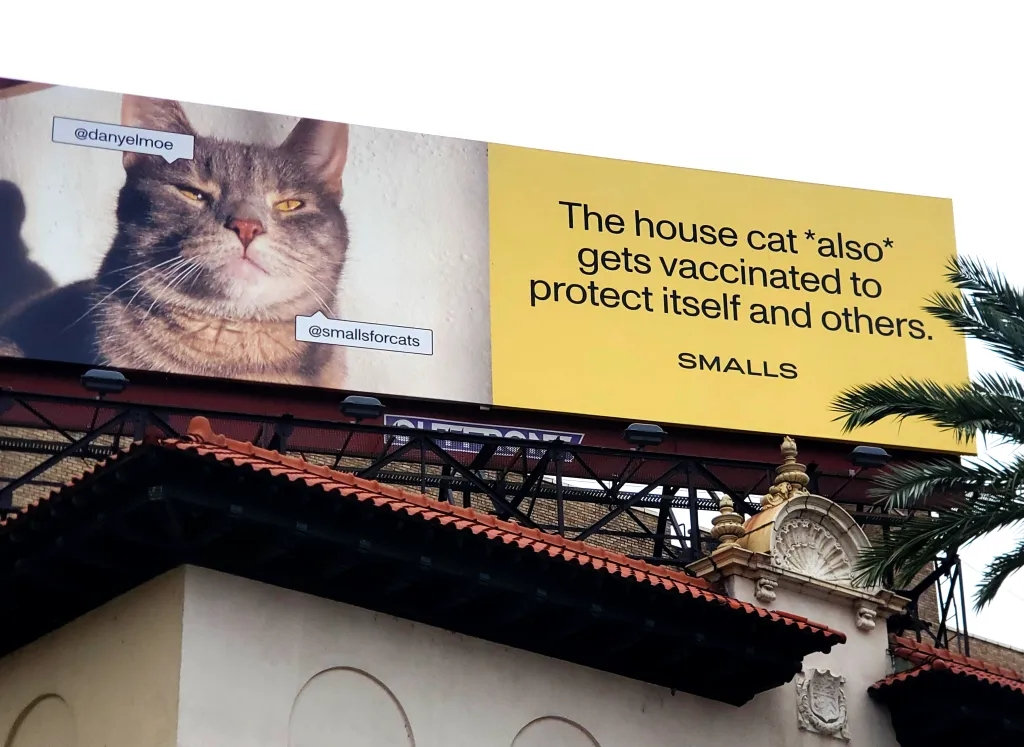 Американський D2C-бренд котячого корму Smalls, що славиться пильною увагою до здоров’я й поведінки котів, почав іміджеву кампанію, в якій закликає людей більше часу проводити вдома, вакцинуватися і прислухатися до медичних порад, які багато в чому збігаються з тим, що ветеринари десятиліттями рекомендують власникам домашніх тварин.