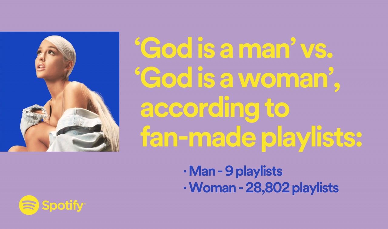 Некто озаглавил список воспроизведения «На***ть, что там на календаре — у меня Рождество» и это попало в кампанию. Еще один пример: сюжет с Арианой Гранде и хитом этого года «Бог — это женщина». 28802 человека назвали плейлисты «Бог — это женщина». Девятеро озаглавили списки словами «Бог — это мужчина». Шокирует, мы в курсе.