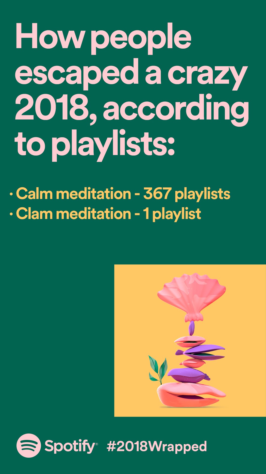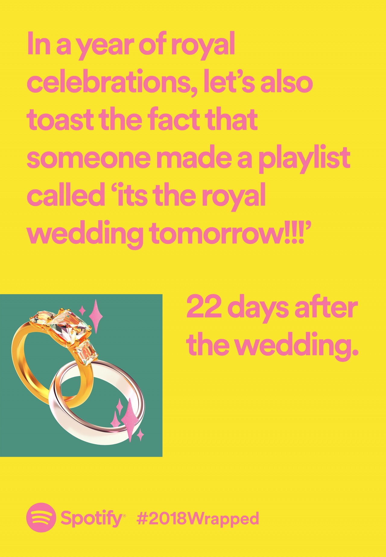 В этом году Spotify уделил внимание не только музыкальным вкусам, но и предпочтениям в подкастах. Так, один из сюжетов гласит: «„Мое любимое убийство“ стал в этом году любимым подкастом 327676 человек. Будьте осторожны, один из них может сейчас стоять у вас за спиной». Внимание в свежей кампании уделено и созданию списков воспроизведения. Креативный директор Spotify Алекс Бодман полагает, если вам доводилось просматривать плейлисты Spotify, вы знаете, сколь творчески некоторые подходят к их названию — и это одна из причин, по которой Spotify решил уделить внимание этому аспекту.
