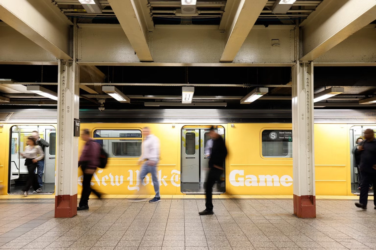Видання The New York Times забрендувало шатл-поїзд метро, що курсує між Таймс-сквер і Центральним вокзалом у Нью-Йорку.