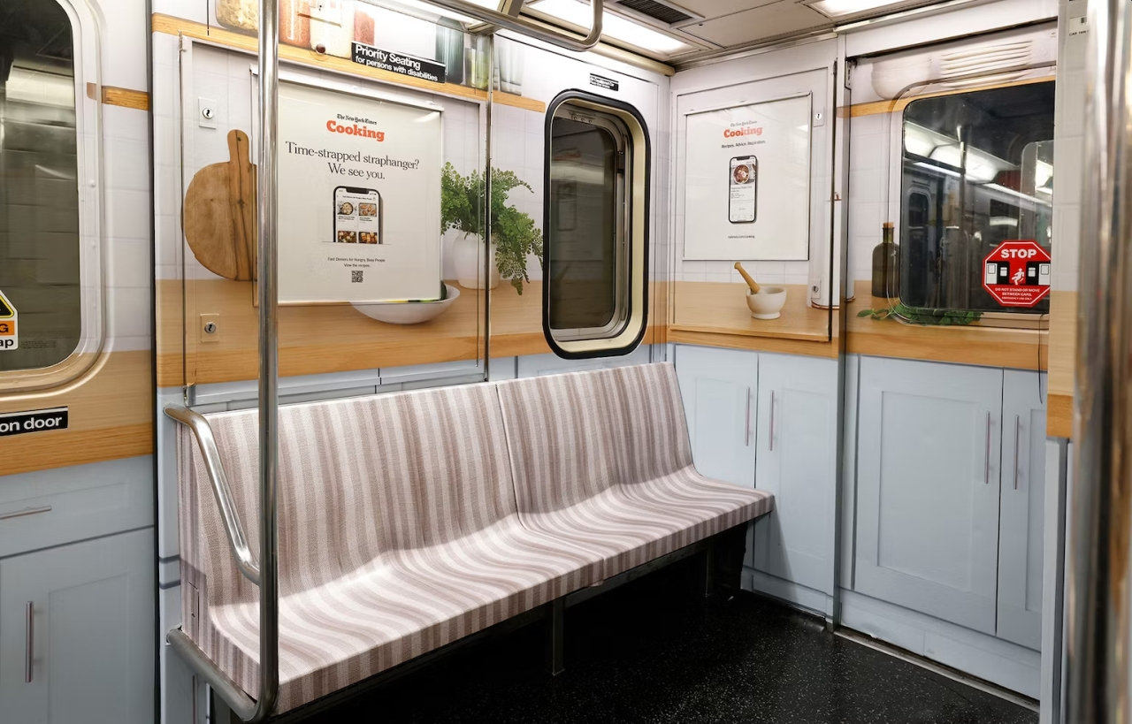 Один з вагонів забрендовано відповідно до тематики спортивного сервісу The Athletic. Це копія роздягальні команди з американського футболу The New York Giants. А от кулінарна рубрика видання втілена у вигляді кухні.