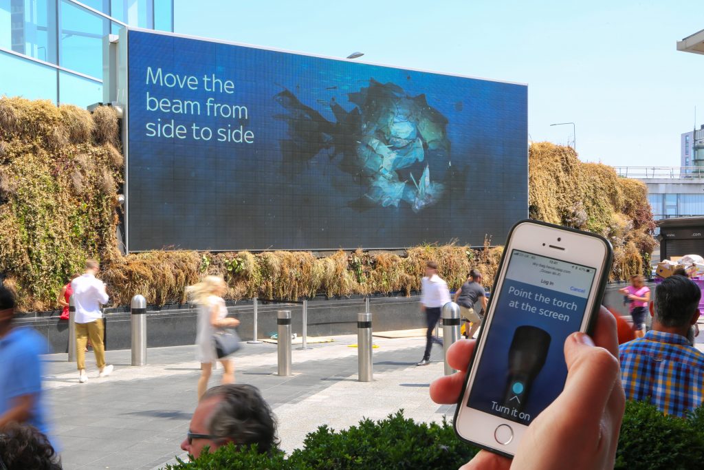 Чтобы понять, что изображено на экране, людям предлагалось взаимодействовать с рекламоностителем с помощью смартфонов. Рекламная конструкция оборудована видеокамерами и умеет распознавать образы. Соответственно, прохожие получили возможность использовать смартфоны в роли виртуальных факелов, рассеивающих тьму, скрывающую самую большую угрозу океанов — пластиковые отходы.