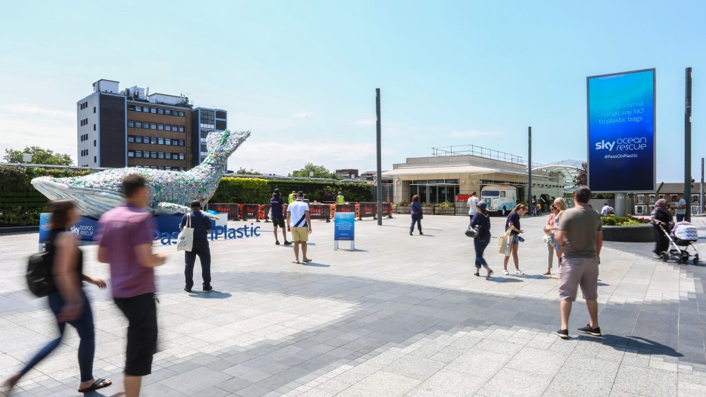 Ожидается, что к 2050 году количество пластика в океанах превысит объем живых ресурсов. Чтобы рассказать о риске для окружающей среды телевизионная компания Sky, креативное агентство WCRS и оператор out of home рекламы Ocean Outdoor провели кампанию Sky Ocean Rescue: The Ocean’s Biggest Threat (в рамках глобальной инициативы Sky Ocean Rescue).