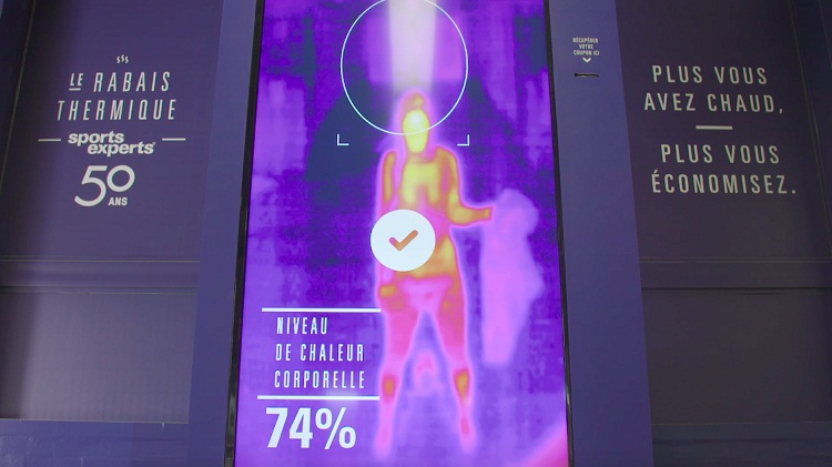 Сеть канадских спортивных магазинов Sports Experts решила побудить потребителей больше двигаться и придумала для этого термо-промоутер в виде цифрового билборда. Билборд называется Thermal Rebate и был установлен 14 ноября в метро Монреаля на станции Люсьен-Л’Алье, известной своей длинной лестницей.