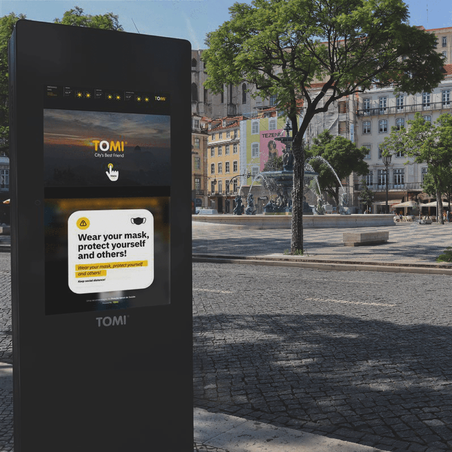 У рекламно-інформаційних терміналах TOMI з’явилася функція, яка виявляє і підраховує кількість перехожих, на яких надіта (або не надіта) індивідуальна захисна маска. Визначенням і підрахунком займається модуль комп’ютерного зору й алгоритм штучного інтелекту. Система працює з деперсоналізованими даними та не порушує законодавство про захист особистої інформації.