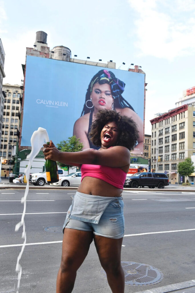 Кампанія H&M так і не відбулася, проте фільмування для Calvin Klein пройшло успішно: Джонс і ще кілька людей відзняли для прайд-кампанії бренду. Їй не було відомо, де з’являться знімки. Знала вона лише те, що в основному була на них з акторкою Томмі Дорфман і дрег-квін Паблло Віттар. І ось одного дня в червні від товариша прийшло повідомлення. На величезному брандмауері, що на Х’юстон-стріт в Нью-Йорку, красувалася Джонс. «Боже мій, — згадує вона. — У мене цілий довбаний брандмауер». І не просто брандмауер, а той самий.