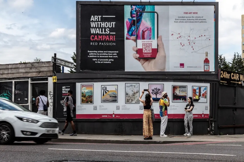 Італійський бренд гірких лікерів Campari надав OOH-медіаресурс для створення галереї просто неба. Партнером проєкту виступив міжнародний художній ярмарок Affordable Art Fair.