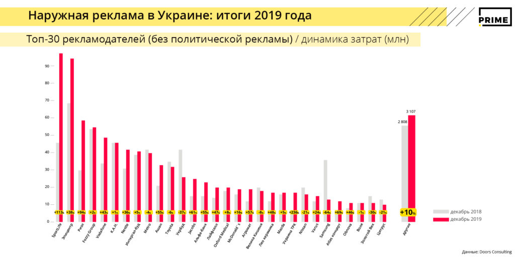 Оператор наружной рекламы PRIME Group проанализировал основные изменения рынка по итогам 2019 года. В основу материала легли данные исследовательской компании DOORS Consulting за соответствующий период.